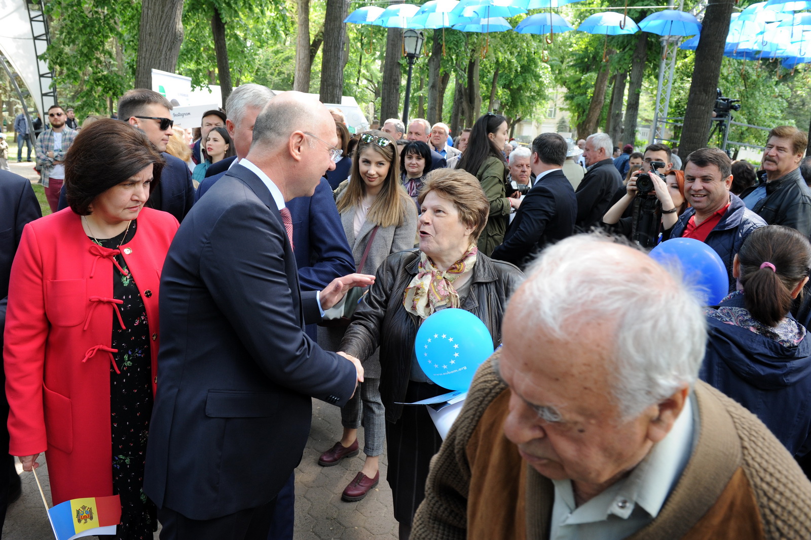 În cadrul evenimentului, premierul Pavel Filip și șeful Delegației UE la Chișinău, Peter Michalko, au vizitat corturile ambasadelor statelor membre ale Uniunii Europene și ale instituțiilor guvernamentale, unde au fost expuse informații despre proiectele europene implementate în țara noastră.