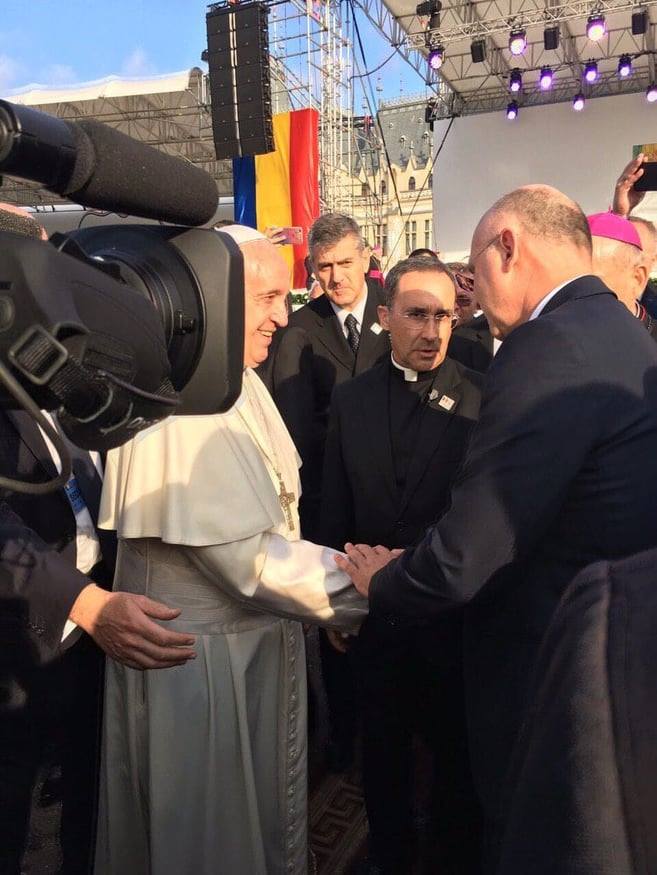 „Sunt onorat să mă aflu printre pelerinii veniți la Iași să-l salute pe Sanctitatea Sa Papa Francisc. În ciuda vremii rele, Piața Palatului Culturii este neîncăpătoare pentru zecile de mii de oameni doritori sa-l vadă pe Sfântul Părinte. Este o vizită istorică, iar mesajul Suveranului Pontif de promovare a unității europene și unității creștine este de o importanță deosebită în lumea contemporană. Suntem recunoscători și pentru implicația umanitară și socială a Bisericii Romano-Catolice în Republica Moldova”, a spus Filip.