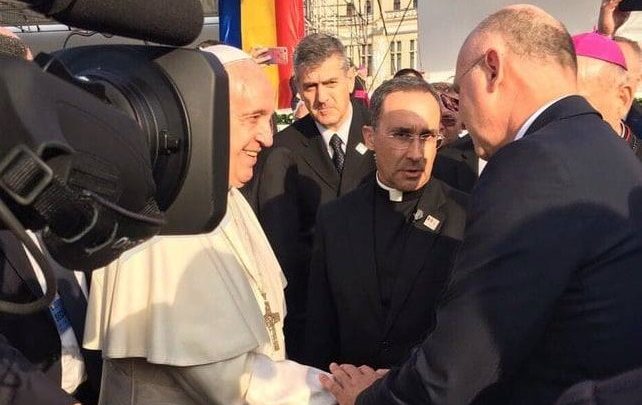 foto | Pavel Filip, printre pelerinii care au venit să îl vadă pe Papa Francisc. Premierul a dat mâna cu suveranul