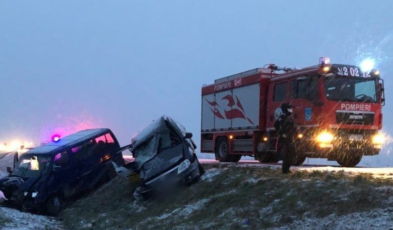 foto | Doi bărbați au decedat, iar alte două persoane au fost rănite, după ce un taxi și un microbuz s-au ciocnit