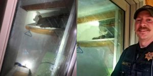 După ce a făcut o mare dezordine în odaie, cel mai probabil că a obosit în încercarea de a evada și a decis să tragă un pui de somn pe unul din rafturile unui dulap. Acolo a și fost găsit de oamenii legii.