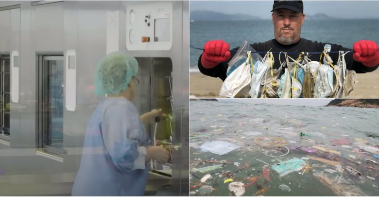 Mai multe țări se confruntă cu problema poluării din cauza măștilor de unică folosință aruncate la întâmplare. Pe internet au apărut o mulțime de imagini și clipuri video în care, printre coralii și algele de la fundul apelor, se văd sute de măști chirurgicale și mănuși din latex.