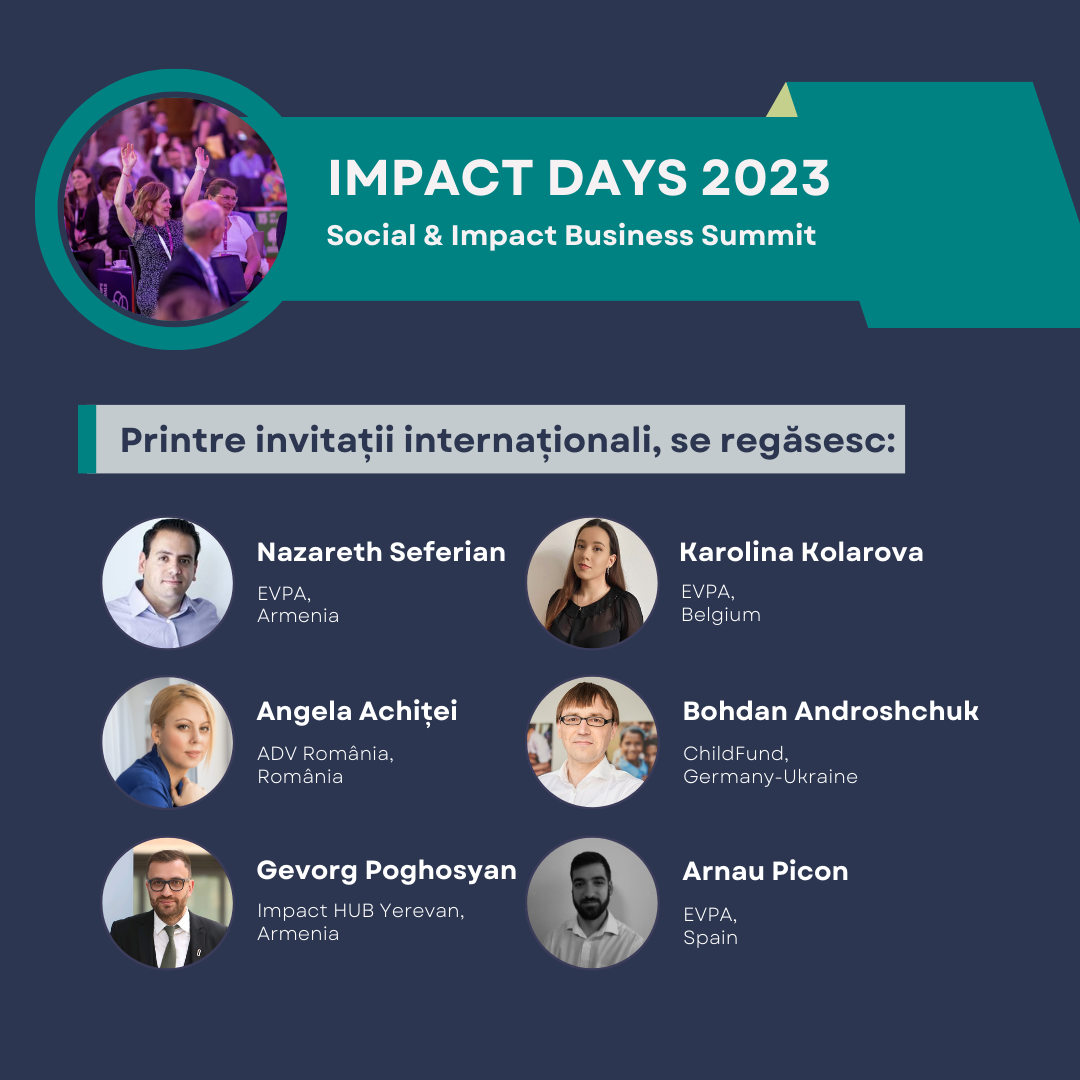 - Invitații și practicieni din Europa și Țările Parteneriatului Estic (România, Ucraina, Armenia, Spania etc.) care vor împărtăși experiența lor în Economie socială și Impact Business!