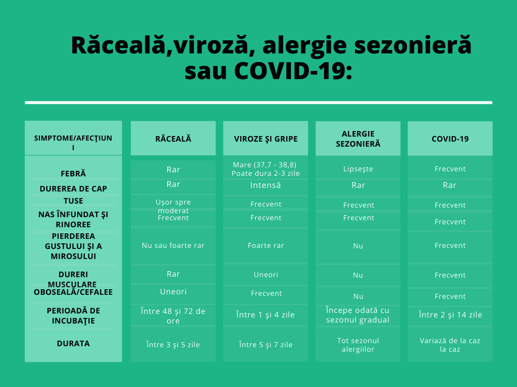 infografic | Alergie sezonieră, răceală, gripă sau COVID-19? Ți-am pregătit un ghid care te va ajuta să faci diferența între simptome