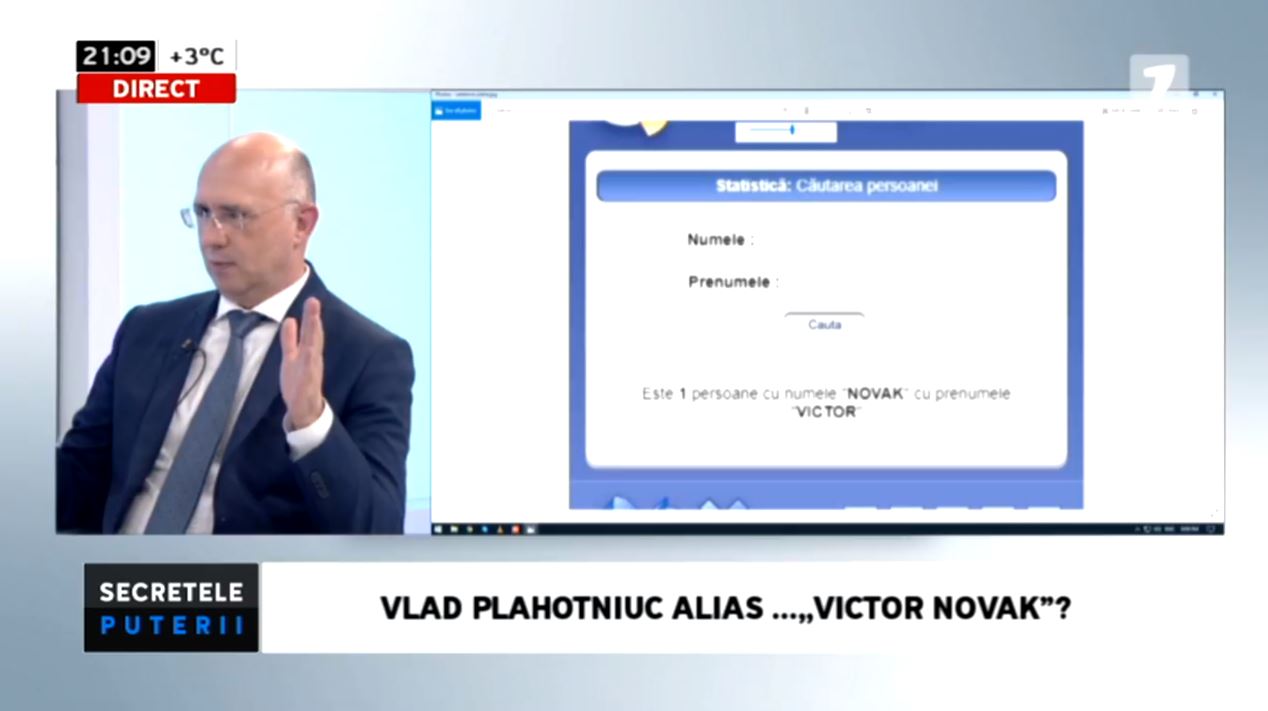 „Este mare păcat că cei care cunosc a doua identitate a lui Plahotniuc se ascund și nu vor să ne ofere detalii. Din sursele pe care le avem noi, ar fi vorba de Victor Novak. Pe site-ul Agenției Servicii Publice este un singur cetățean cu acest nume în Republica Moldova. Foarte interesant. M-am uitat chiar și în DEX, „novak” înseamnă „om puternic, viguros”. Interesat de ce și-a ales un asemenea nume domnul Plahotniuc, sau cine i l-a ales…”, a menționat moderatorul Alex Cozer.