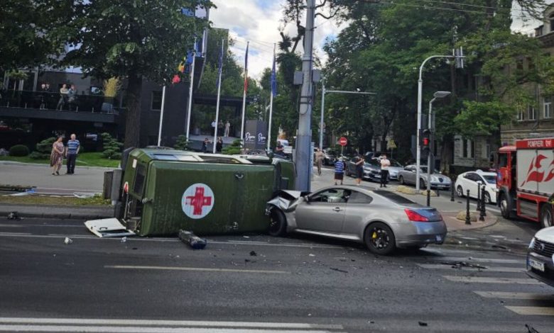 video | Un vehicul al Armatei Naționale s-a răsturnat în centrul Chișinăului după ce s-a izbit cu un automobil