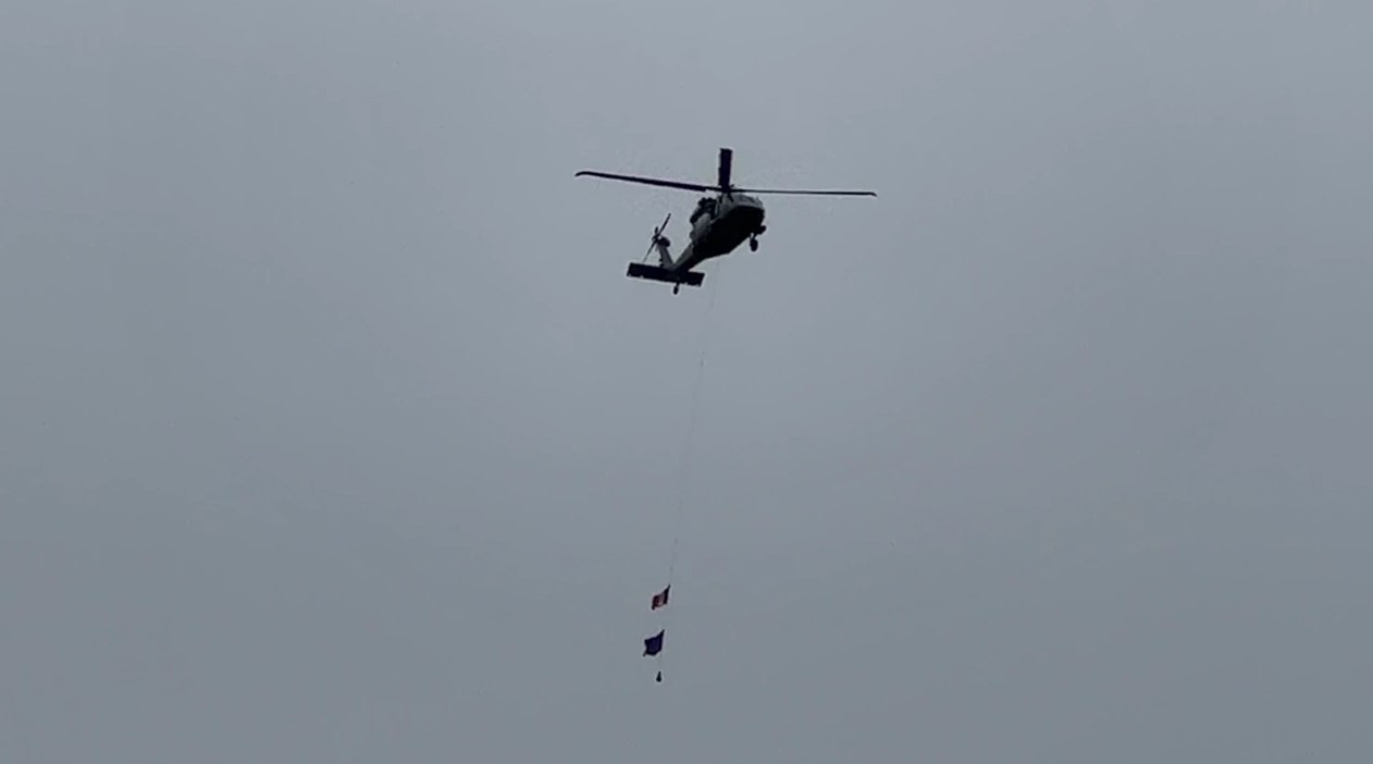 Elicopterul „Black Hawk” a surlovat centrul Chișinăului cu drapelul Moldovei și al Uniunii Europene.