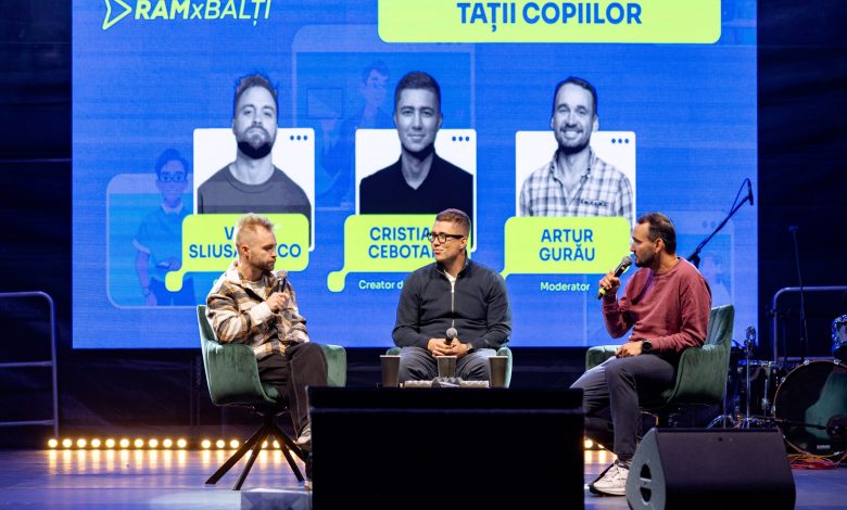 La RAMxBălți, în panelul intitulat „Tații copiilor”, Cristian Cebotari și Vlad Sliusarenco, au discuta despre cum își imaginează Moldova de mâine, ce valori vor să transmită copiilor lor și care sunt provocările de a fi, în același timp, părinți și creatori de conținut.