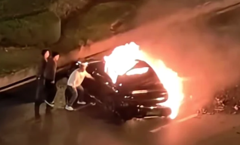 video | Geamurile antiefracție ale unui automobil au împiedicat salvarea unui șofer în timpul incendiului