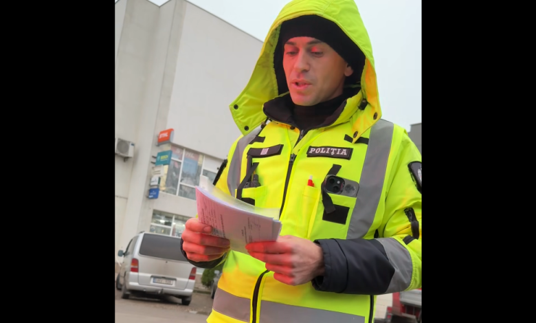 Bărbatul nu ezită să îi spună agentului de patrulare că „o să devină star pe Facebook”.